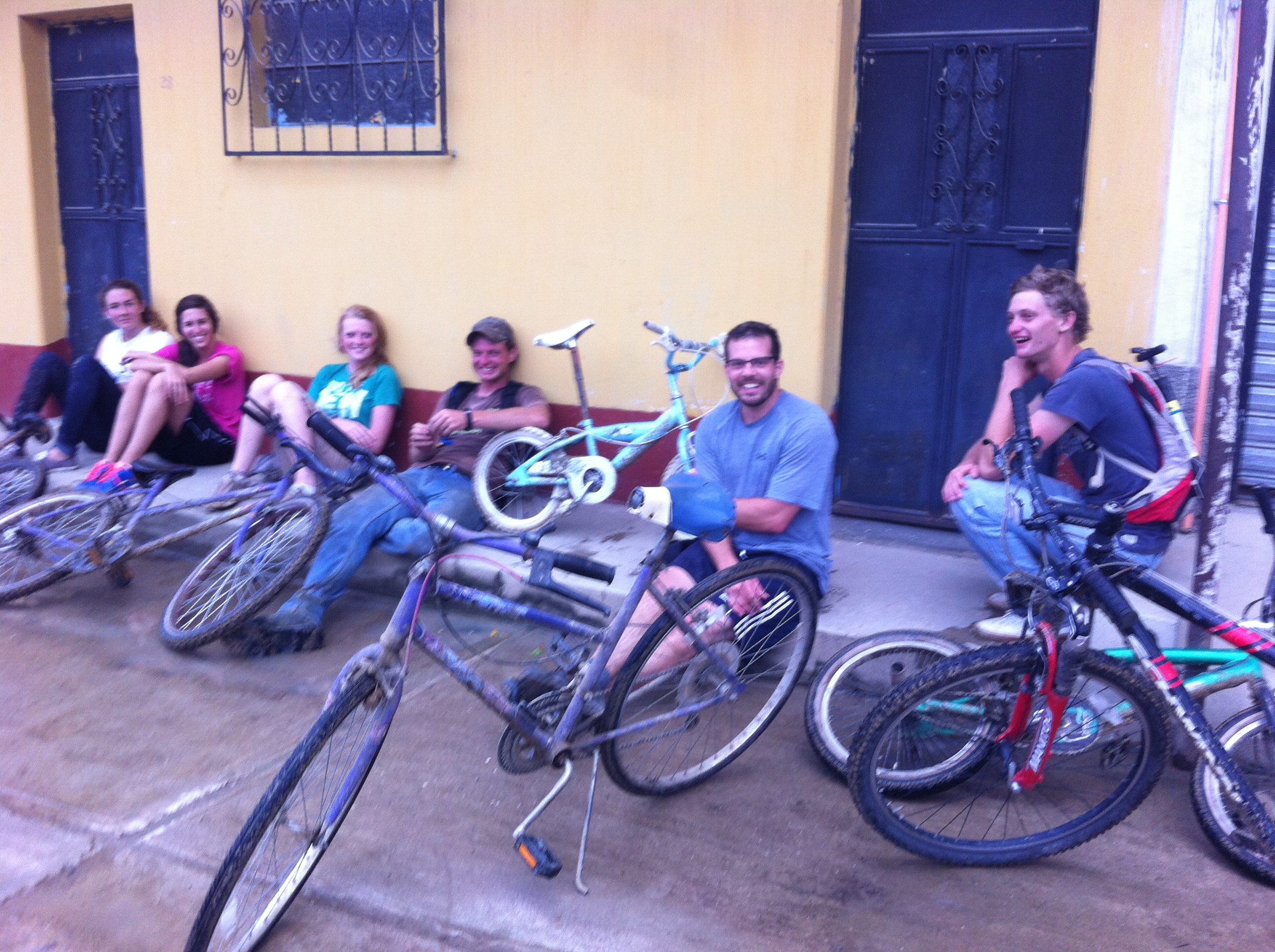 The closest town to us is San Andres. It’s a 10.9 mile road that is dirt, with plenty of potholes, ridges, rocks, ditches and hills. I should say hills, hills, and more hills. It’s one of those challenges that’s sort of been established around here – to ride there and back. And so I agreed to the ride this month with the crew. We had a close call with a truck, numerous close calls to wiping out, we rode the last 5 miles in the dark, while downpouring, and the sweat blinding me. How no one wrecked is still a mystery. Our bikes were sort of pieced together and we only needed a wrench once on the ride. Not bad. David was riding Grace’s oldest bike – kind of like a unicycle. None the less, about as good as adventures get around here!